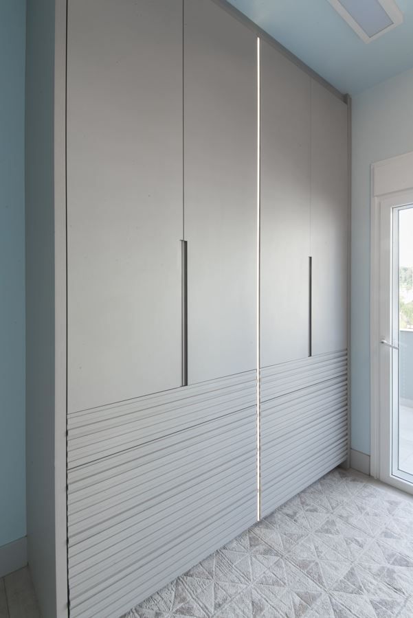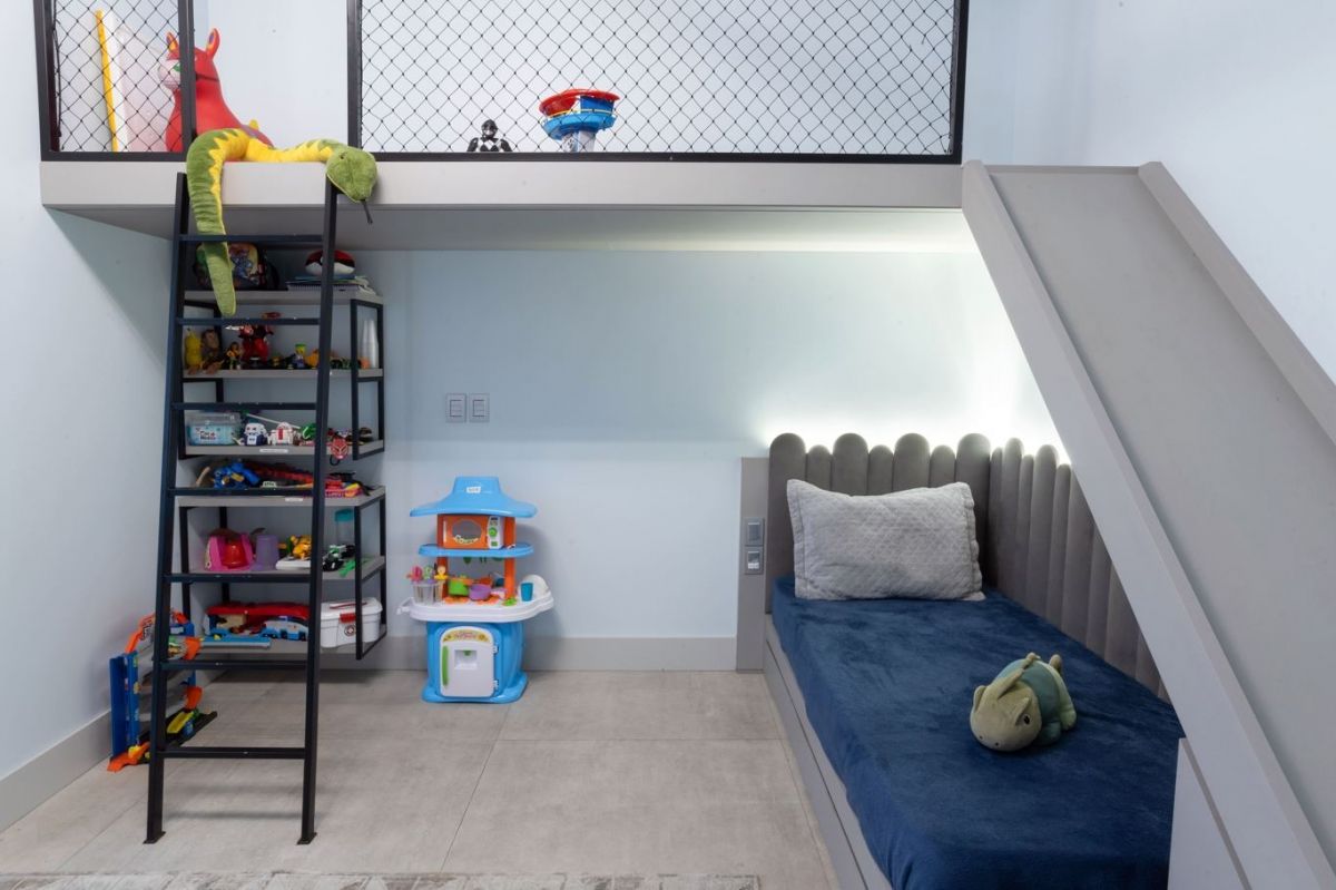 Sempre fui apaixonada pelos tons de cinza quente na arquitetura, que trazem aconchego e elegância ao mesmo tempo. O pé-direito alto e a iluminação quente complementam essa sensação de amplitude e conforto.