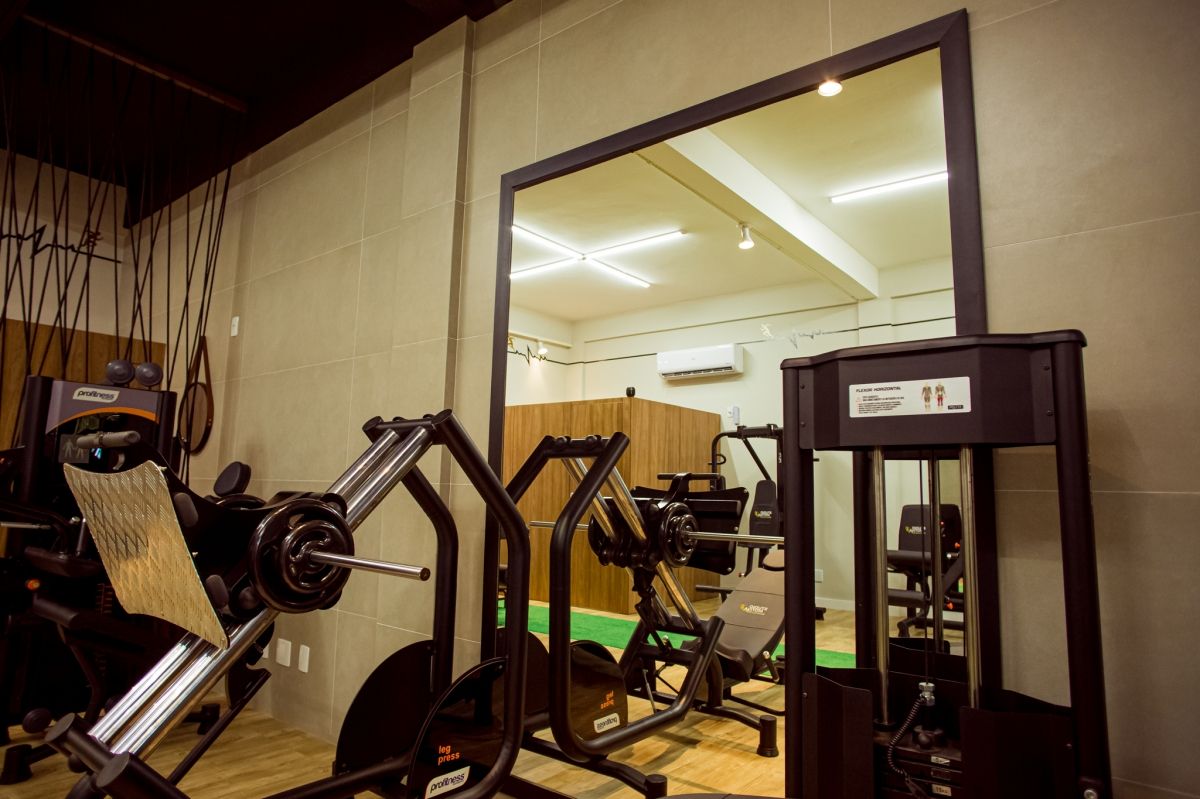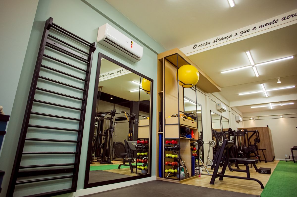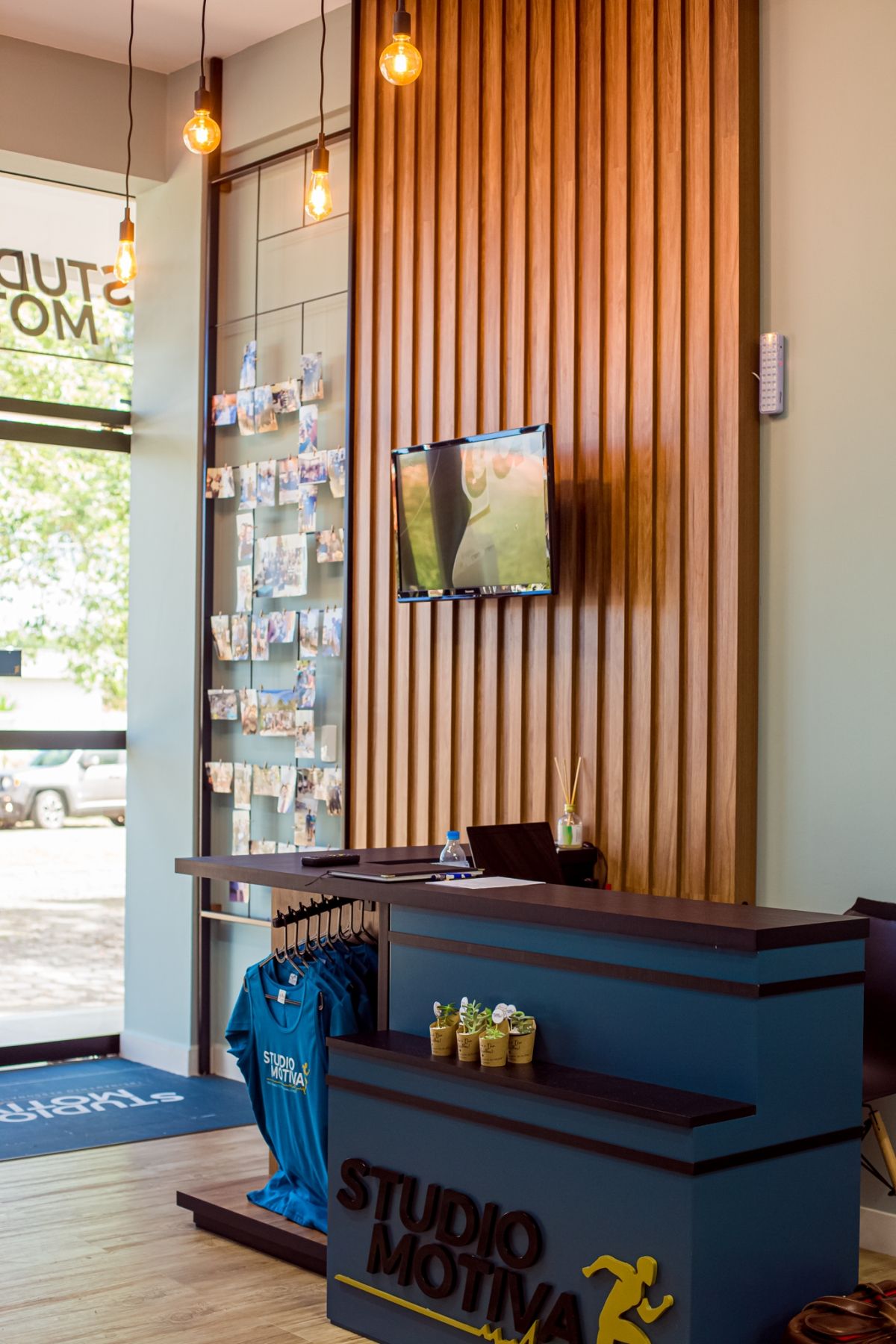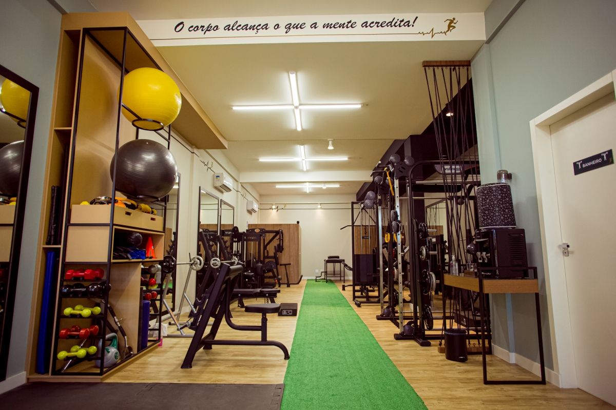 E o Resultado? Um espaço que MOTIVA! O piso, a pista de corrida em grama, parede verde, cordas, e até mesmo o mural de fotos na entrada... todos elementos que trazem um diferencial para este ambiente, traços da biofilia, originando mais bem-estar para seus usuários e os MOTIVA a fazerem suas atividades físicas?
