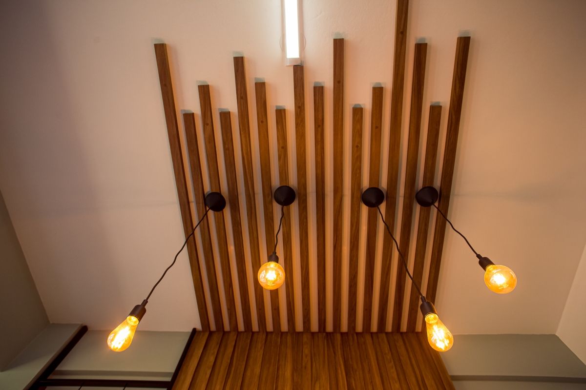 Outros itens como reverberação do som, que só foi possível resolver com o uso de piso vinílico e Marcenaria sob medida moveis J Mariano, iluminação ideal que ficou por conta da Premel Iluminacão, e neste Projeto foi necessário “ampliar” o espaço visualmente com os espelhos da São Jorge Vidros.